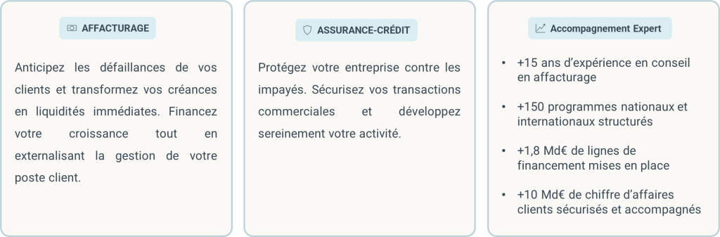 Face à ces contraintes, l’affacturage permet aux entreprises de déléguer la gestion du poste clients, de sécuriser leurs flux financiers et de se concentrer sur leur activité, sans subir l’impact des délais de paiement.